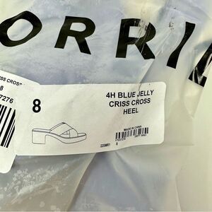 Light blue jelly sandals from Torrid. They have 2.5” heels and are a size 8 extra wide.
