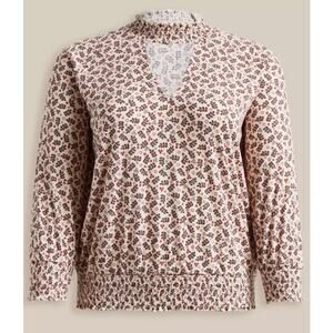 Textured Jersey Choker Neck Smocked Top, Long Sleeve Pull over