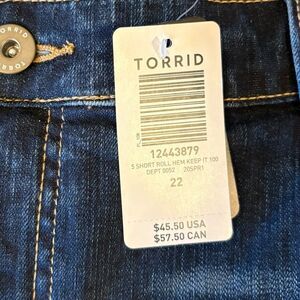 Torrid Keep It 100 5 Inch Rolled Hem Denim Shorts Womens Size 22 NWT