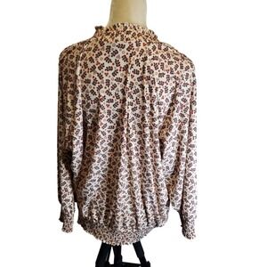 Has elastic rouching at high neck amd cuffs