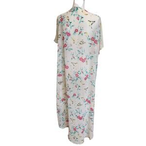 Torrid Kimono Duster Size 2/3 2X/3X White Pink Floral Sheer Flutter Sleeves Long Birds