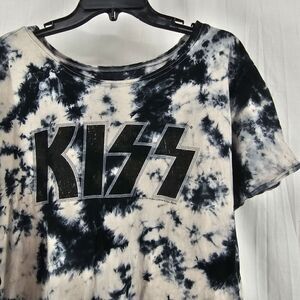 Torrid Kiss Crew Tee - Tie-Dye Black & WhiteSize 3 Plus Size Armpit to armpit 28" Length 28"