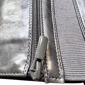 Color is dark gray faux leather