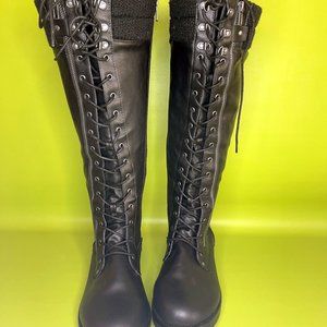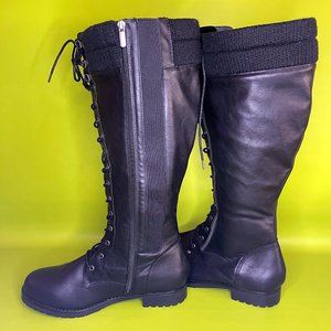 Torrid Knee Lace-up Sweater Boot in Black Pebbled Faux Leather 10.5WW