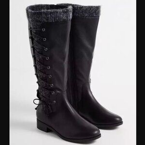 Torrid Knee-High Faux Leather Boots with Sweater Knit Cuffs