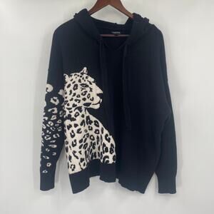 Torrid Knit Hooded Sweater Drawstring Leopard Graphic Black White Plus Womens 1X