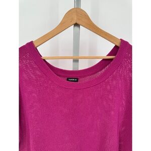 Keywords: Torrid, knit top, sweater, pullover, short sleeve, oversized, plus size, size 2, pink, relaxed fit, casual, comfortable, cotton blend, women's fashion, open knit