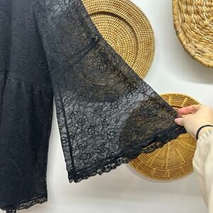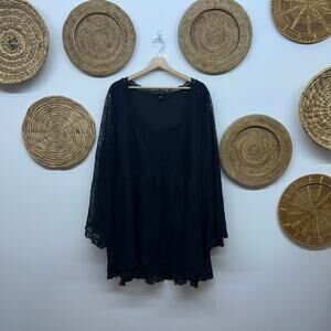 Torrid Lace Baby Doll Top Plus Size 5X Black Sweetheart Neck Sheer Bell Sleeve