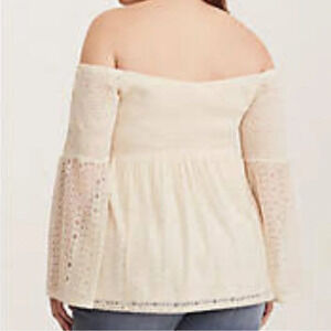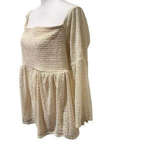 Torrid Lace Bell Sleeve Baby Doll Top with Smocked Bodice. Cream/Ivory Size 1/1X. New with tags.