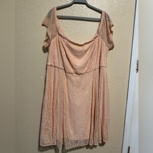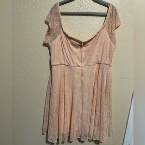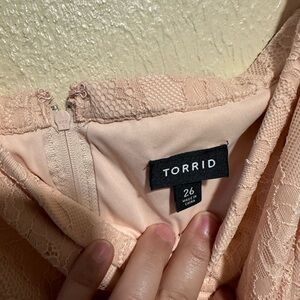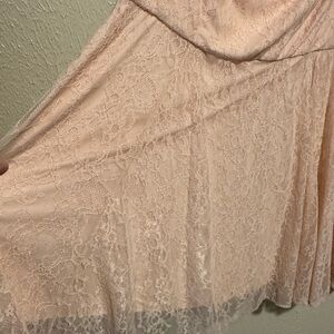Great condition, peach color (lighting is bad), stretchy, zips in back, lined