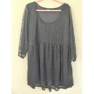 Torrid Lace Empire Waist Tunic Blouse Womens Size 3 Black Whimsigoth Sheer Sleev