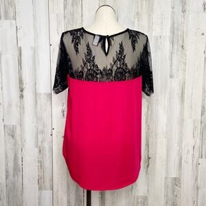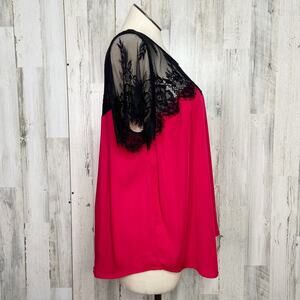 Torrid Lace Inset Top Red Black Short Sleeve Flowy Business Preppy Size 2X