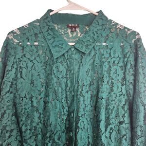 Torrid Lace Madison Button Down Blouse Plus Size 2X Holiday Career Work Office