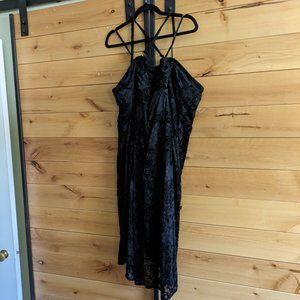 Beautiful strappy dress, lace and velvet overlay dress. Straps are removable and adjustable, can be made to crisscross or straight over the shoulders. Silicone at the top to help hold you in. :) Zips up the back. Measurements laying flat, pit to pit 25" with a little stretch, waist 24" with a little stretch, 37" from top of cup to hem. Only worn once! Pet and smoke free home.