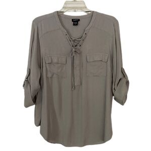 Torrid Lace Up Blouse Gray 3/4 Sleeves With Roll Tabs Lightweight Plus Size 0