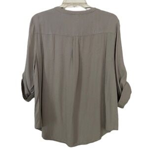 Chic blouse with lace-up front. Roll-tab sleeves add versatility. Perfect for casual wear. Excellent preowned condition with no flaws.