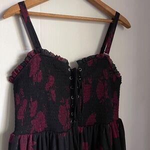 Torrid Lace Up Dress 1X Red Black Floral Smocked Layered Milk Maid Fairy Goth