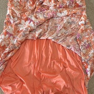 Torrid Lace Up Tea Length Crinkle Gauze Floral Coral Dress - Size 1X