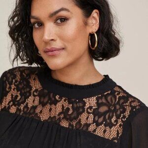 Torrid Lace With Chiffon Overlay Blouse Black