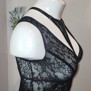 Torrid - Lacy Bondage Bodysuit with Neck Harness in Rich Black