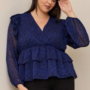 Torrid Leopard Print Top Chiffon Ruffle Blouse 3XL