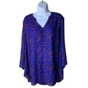 Torrid Leopard Animal Print Tunic Tops Women's Size 2X 3/4 Sleeve V-Neck Hook And Eye Flowy Casual Summer Multicolor