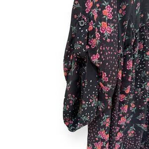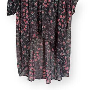 Torrid Lexie Babydoll Tunic Black Floral Polka Dot Hi-Lo Womens 2X Sheer Chiffon