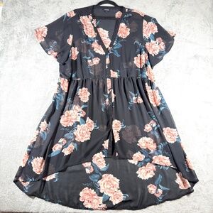 Torrid Lexie Babydoll Women’s 3X Floral Hi Low Tunic Top Chiffon Plus Size Blous