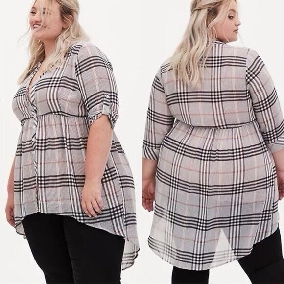 Torrid Lexie Blouse Womens Size 2X Hi Low Tunic Top Plaid Chiffon. Condition is Pre-owned - Excellent. Shipped with USPS Ground Advantage.