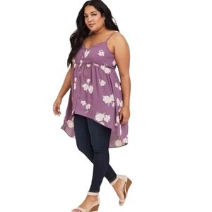 Torrid Lexie Floral Hi Lo Babydoll Blouse Top Size 2