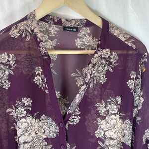Torrid Lexie Sheer Purple Chiffon Floral High Low Top Sz 2X