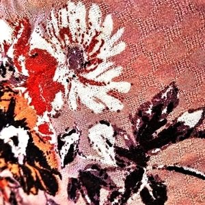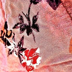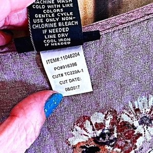 lavender floral sleeveless blouse with elastic empire waist. loose fitting. crinkle fabric texture, lightweight. no fabric tag but feels like cotton no stretch. gently used