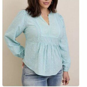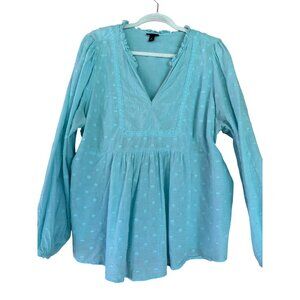 Torrid Light Blue Eyelet Clip Dot Long Sleeve Cotton Top Blouse Womens Size 2X