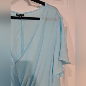 Torrid Light Blue Georgette Twist Surplice Flutter Sleeve Blouse in Size 5/28