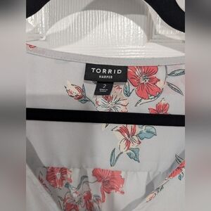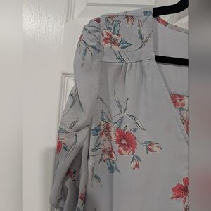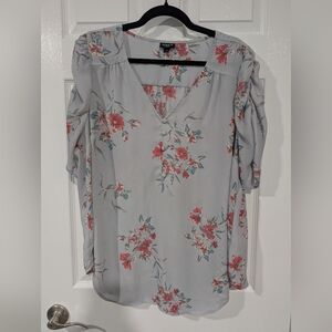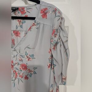Torrid Light Gray Floral Harper Georgette V-Neck Ruched Sleeve Blouse Size 2