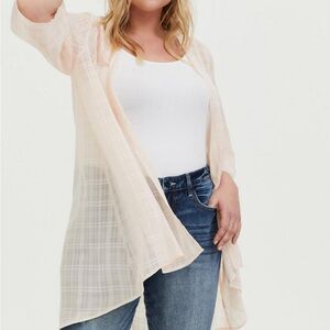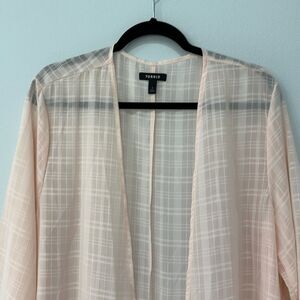Torrid Light Pink Plaid Sheer Chiffon Kimono/Cover Up/Cardigan Plus Sz 1
