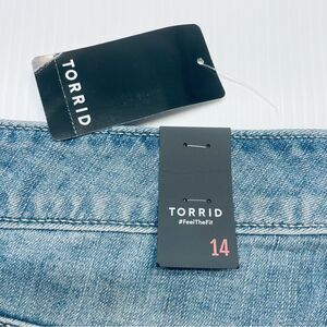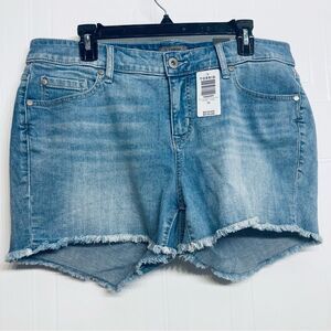 Torrid Light Wash Cotton Denim Blue Jean Raw Hem Shorts Size 14 NEW