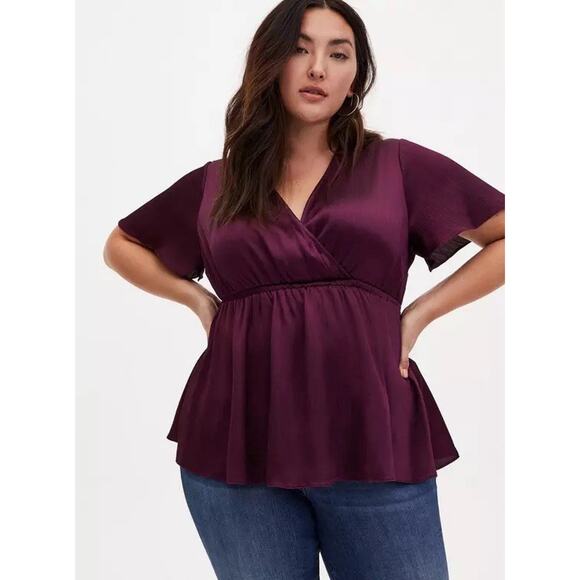 Torrid Lily Babydoll Shiny Blouse Purple Silky Babydoll New 2X