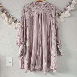 Torrid Lindsay Drop Shoulder Button Down Pink Striped Top Business Casual Boho 5
