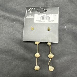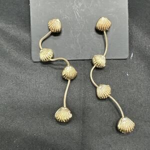 Torrid Linear Earrings Gold Tone Beaded Scalloped Sea Shells Tropical Dangle New