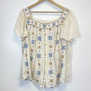 Torrid Linen Blend Embroidered Floral Flutter Sleeve Top