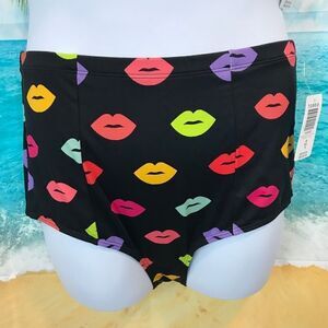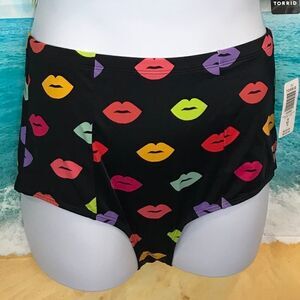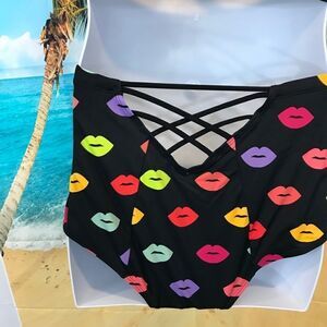 Torrid Lips Pattern High-Rise Strappy Back Swim Bottom 3X