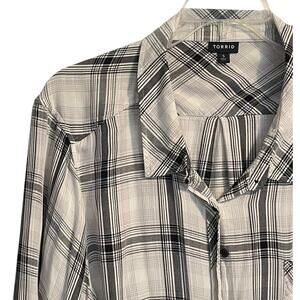 Torrid Lizzie Black & White Plaid Twill Button-Up