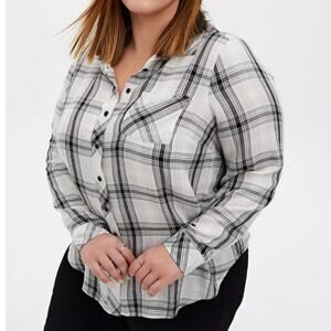 Torrid Lizzie Rayon Twill Button-Up Shirt Womens Size 5X Black & White Plaid