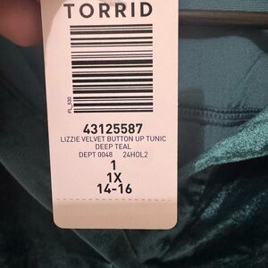 Torrid Lizzie Teal Velvet Tunic Size 1X
