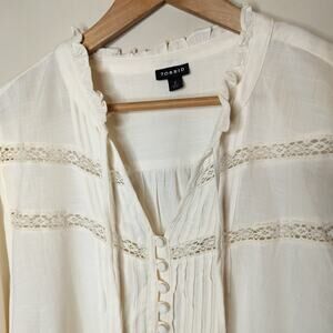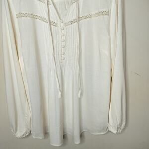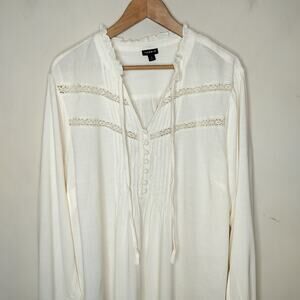 Torrid Long Sleeve Top Pintuck Pleat Boho Ivory