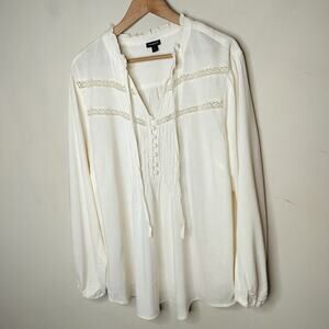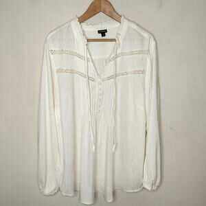 Torrid ivory pintuck lace trim tasseled top Size 2X. 100% rayon. (22793)