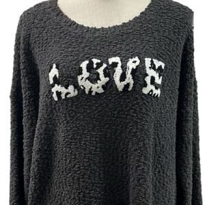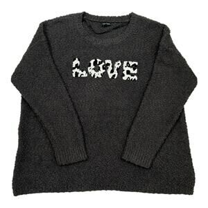 Torrid Love Sweater Womens 2X Gray Nubby Texture Embroidered Drop Shoulder Cozy