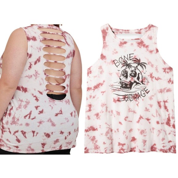 Torrid LoveSick Tie Dye Skull Island Bone Voyage Tank Slashed Back Plus Size 3X