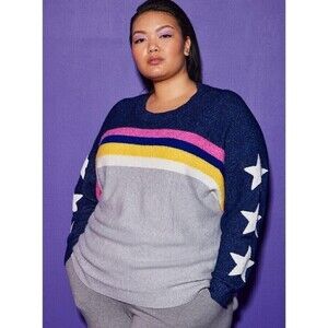 Torrid Lovesick Sweater Size 1X (14/16) Vegan Cashmere Striped Colorblock with Stars Down the Arms New With Tags